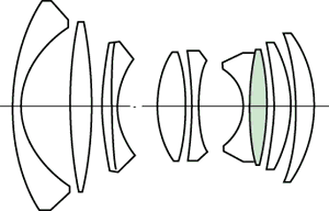 This was the world's largest aperture 24mm wide angle lens at the time. A ground and polished glass aspherical lens surface, applied at the rear surface of the eighth lens element correct spherical aberration and astigmatism to achieve high picture quality even at a full aperture of f/1.4. The floating mechanism achieves high definition from the shortest focusing distance to infinity.