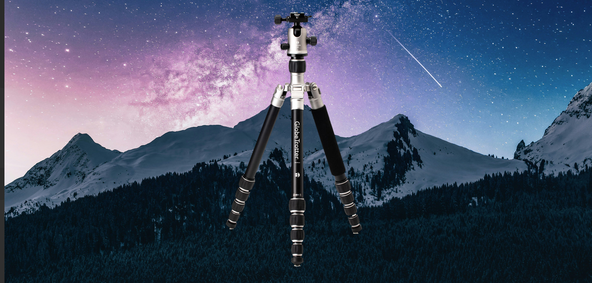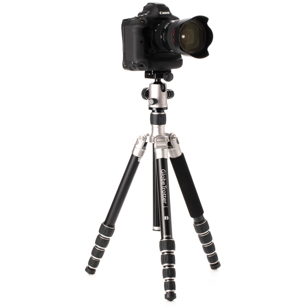 The MeFoto Globetrotter Aluminum Travel Tripod Kit from Benro is a sturdy, compact tripod that extends to 64.2″, supports up to 26.4 lb, and folds down to just over 16″. The GlobeTrotter is actually two camera supports in one: a foam-cushioned, removable leg attaches to the center column to convert to full size monopod.