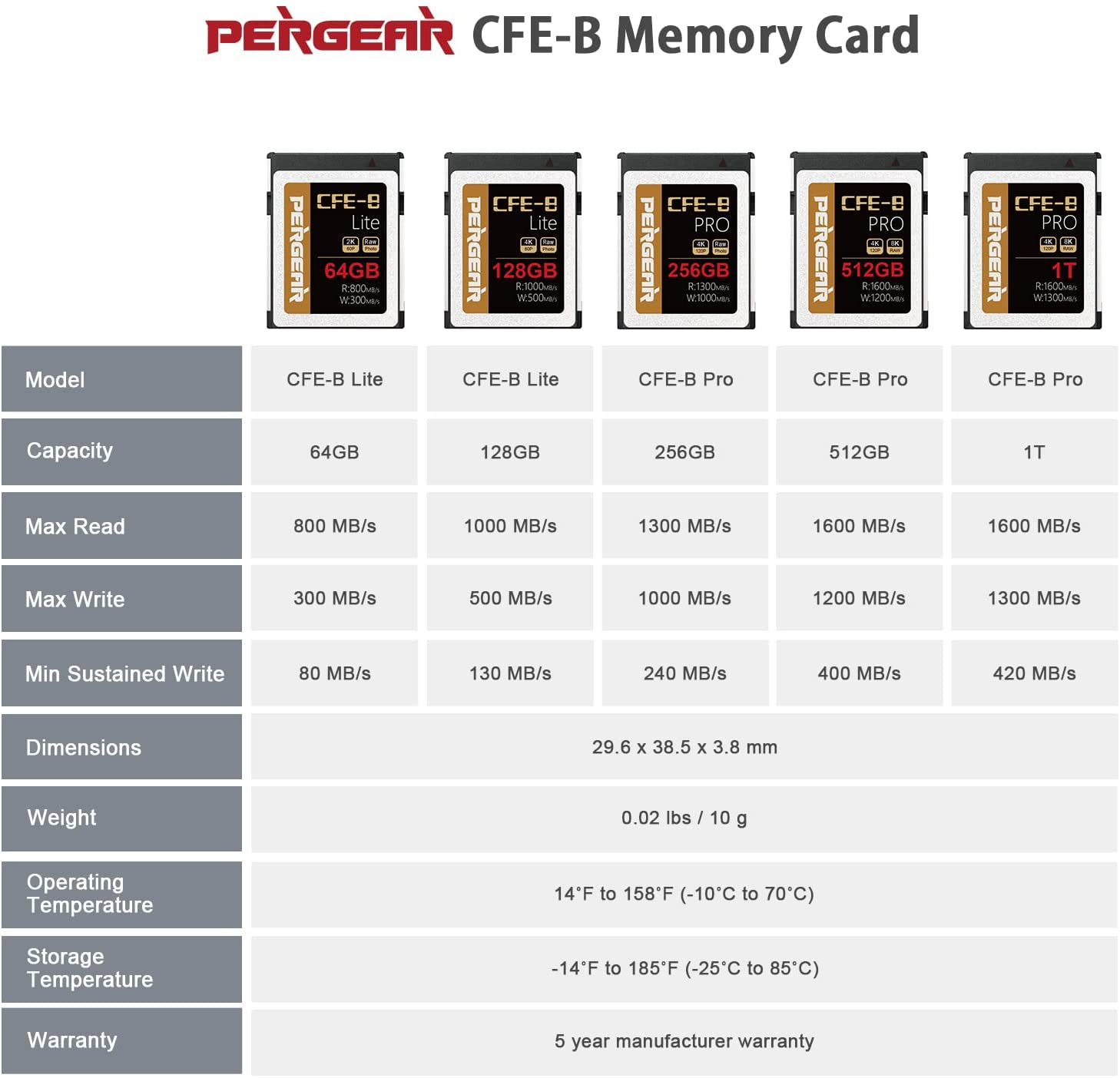 - PERGEAR CFexpress Type-B Lite 64GB Memory Card with Card Reader $99