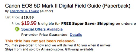 Amazon & Wiley have a listing for the 5D Mark II field guide. Wiley shows a release date in November.