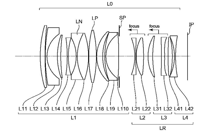 In this patent application (2026-013481), Canon has several interesting embodiments that we will explore here. These embodiments look very much like something I'd expect to see in a production halo RF 35mm f/1.2 prime. Lots of elements and dual focus groups to maximize the speed of focus, and also assist in eliminating any focus breathing that may occur.