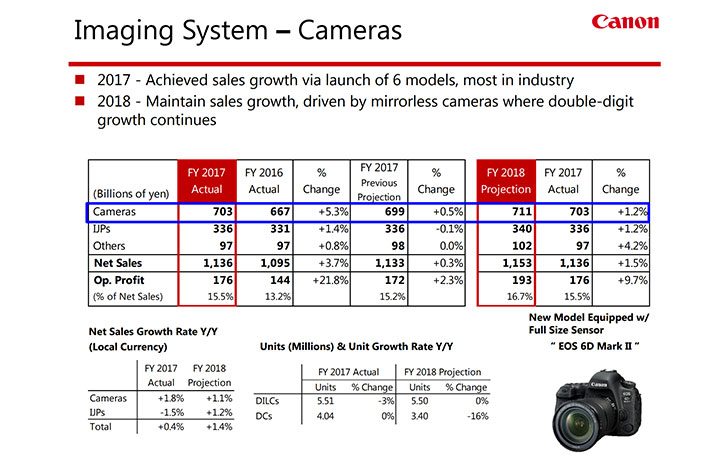 The new products launched in 2017 that were just highlighted will contribute to sales for a full-year. With this and continued efforts to enhance our lineup we will stimulate demand and work to further increase our market share. Within this, for mirrorless cameras where we are working to enhance our lineup, this year we continue our aim to grow at a double-digit rate, putting focus on expanding sales of mainly new products that captures SNS user demand.