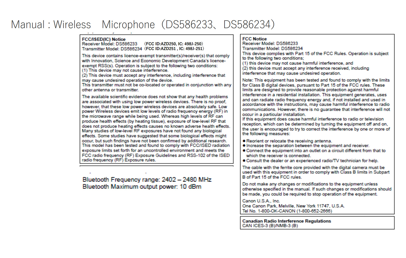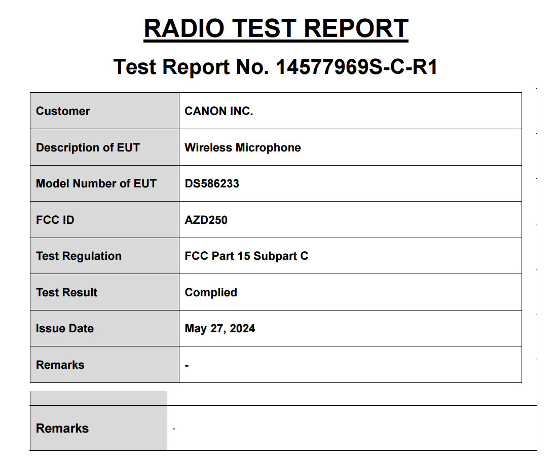 A wireless microphone has been registered with the authorities by Canon. So it would appear that Canon will be releasing a wireless microphone set for the RF system.