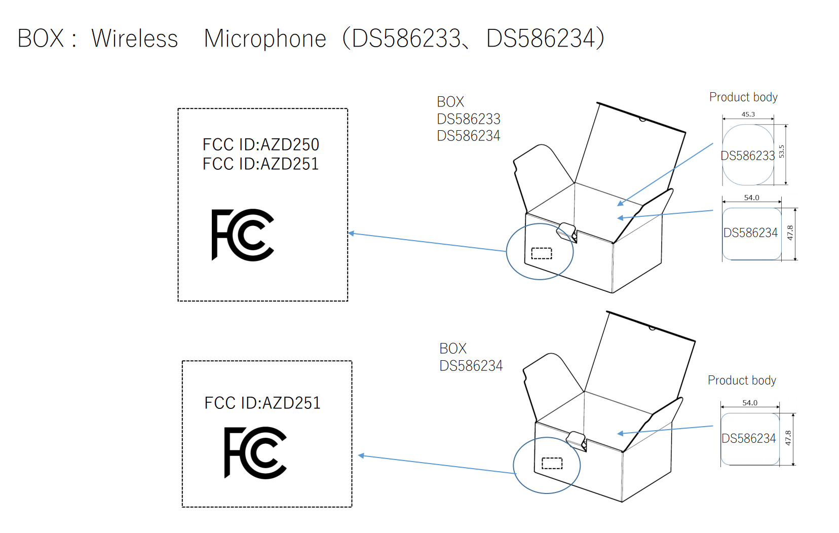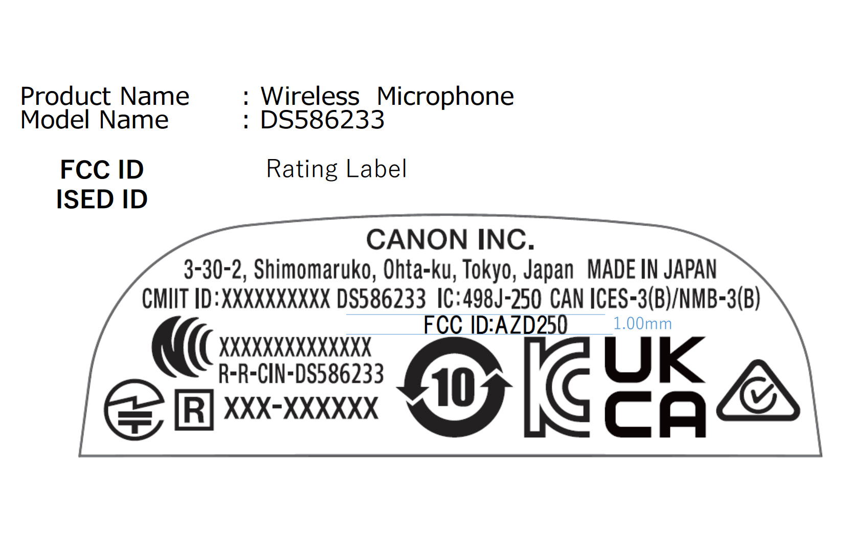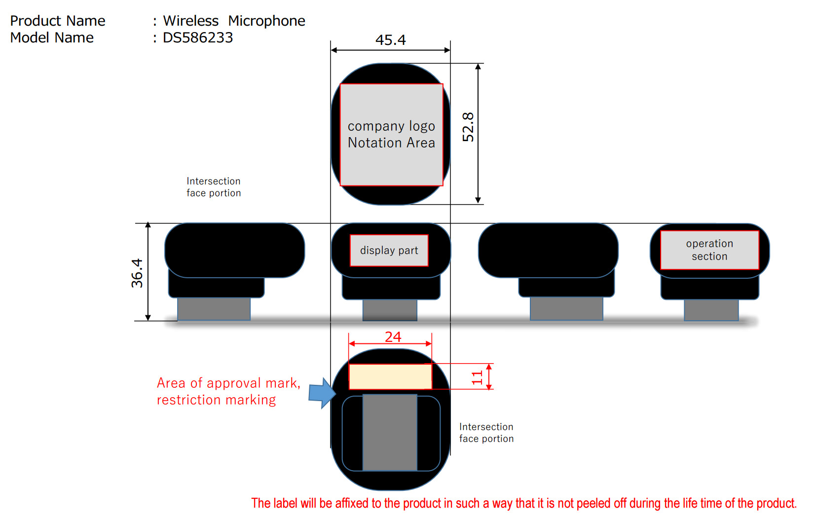 The nomenclature for the device and rough outline of the device is shown below. They didn't show the microphone part, which I found a little interesting, as I thought the FCC labels would be on both components.