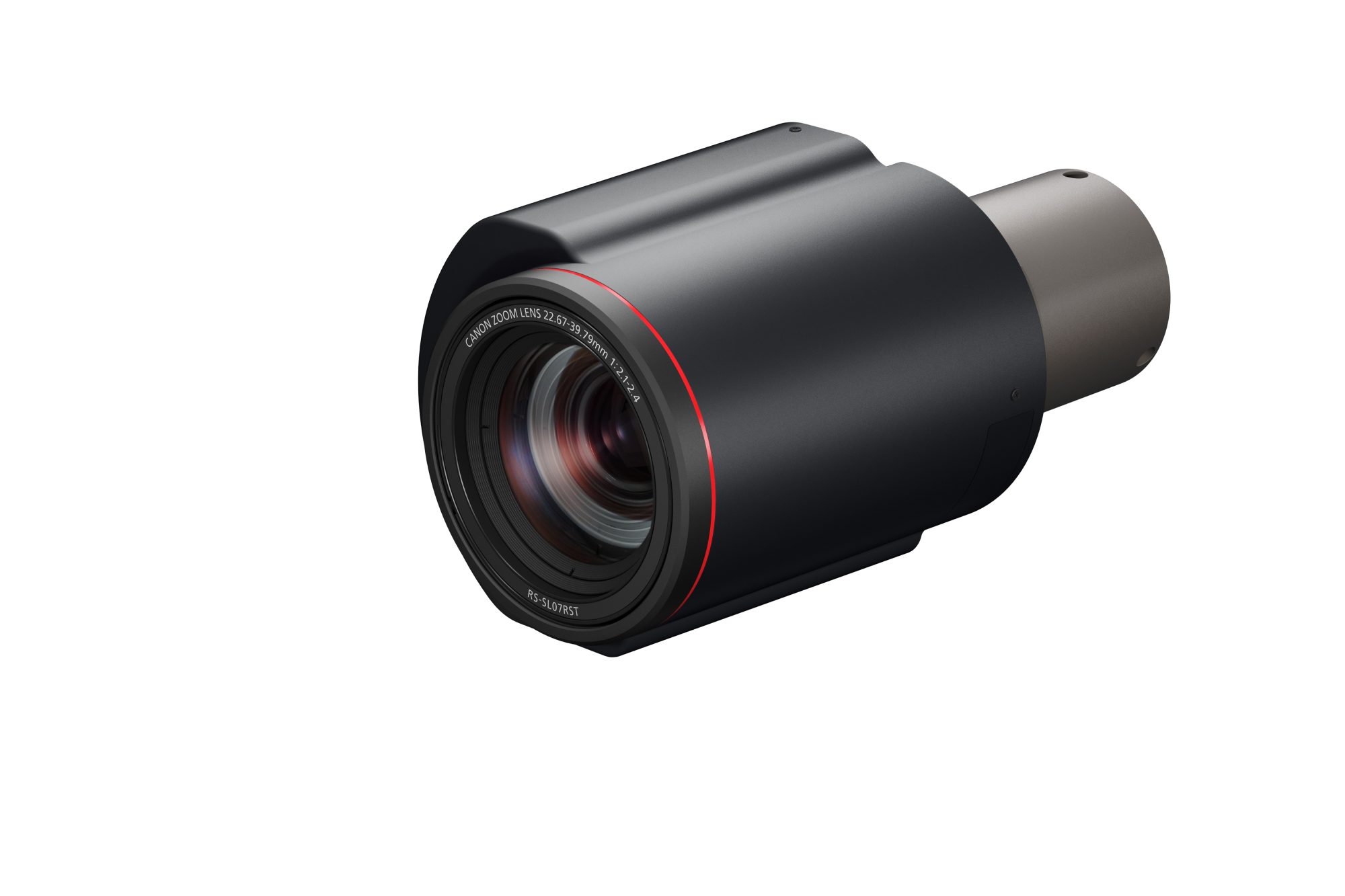 The new RS-SL07RST 4K Standard Zoom Lens features the distinguished red line around the barrel, indicating the highest level of Canon design and superb image quality. The lens can project images up to 600 inches and can even project onto curved surfaces; maintaining focus in the center of the image when peripheral focus has been adjusted.