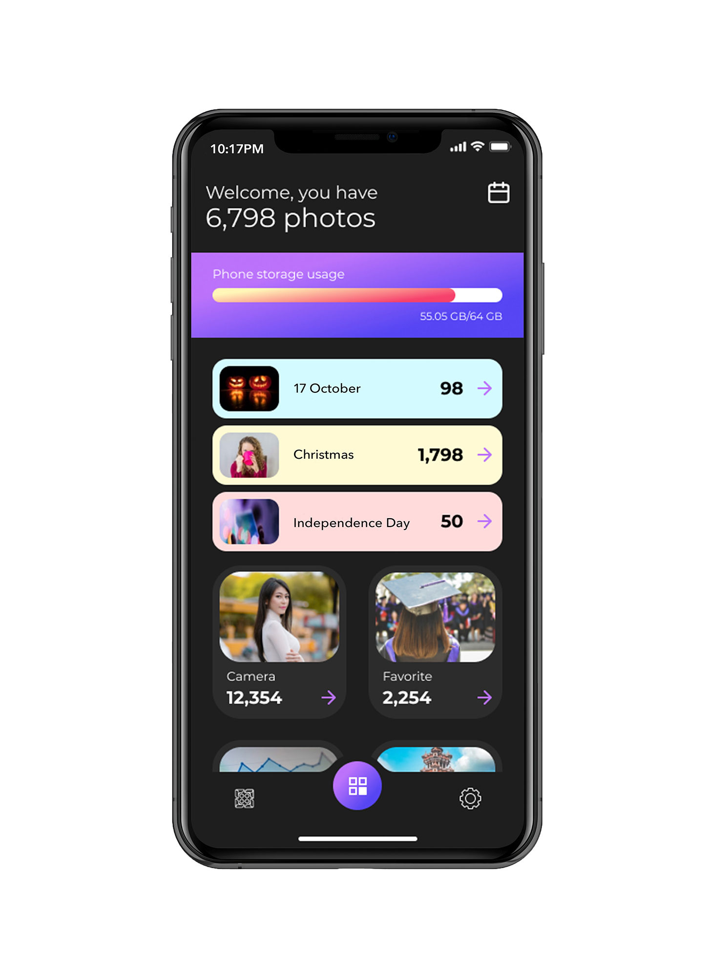 - Event Album: Categorizing and placing photos in albums on the Home Screen. These are dynamic albums based on events/date throughout the year and the app will pull events that have a large number of photos and suggest the user review these photos to delete and save space