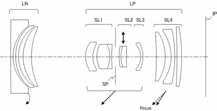 In this embodiment, Canon shows off a 28-70mm variable aperture zoom lens. Now granted, Canon already has a STM lens that is 28-70, but this one would be arguably cheaper and also smaller and lighter than that constant aperture F2.8 lens. The lens is 92mm in lens length at 28mm, but there seems to be quite a gap, as with the other embodiments, between the first LN group and the rest, leading me to think that it's very collapsible.