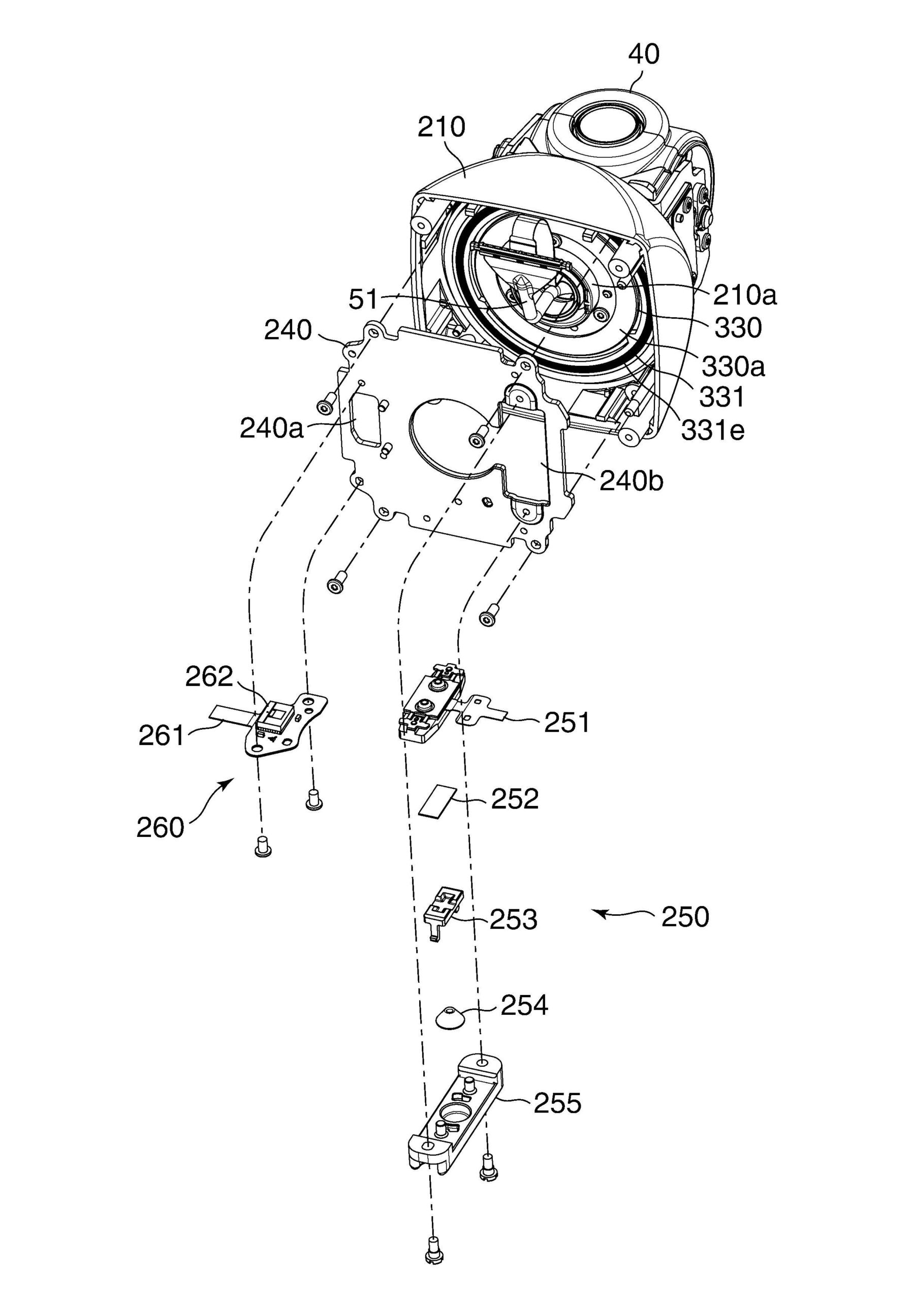 The concept is to create a very small apparatus that pans and tilts a camera integrated into the assembly – but the assembly should also work with external attached cameras as well, even though Canon doesn't actually show the mechanical assembly of such a device.