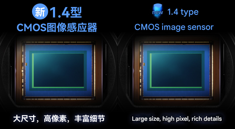 Compared to the 1.0-type sensor installed in a normal compact digital camera, the 1.4-type CMOS sensor is about twice the area, achieving high image quality and high sensitivity.
