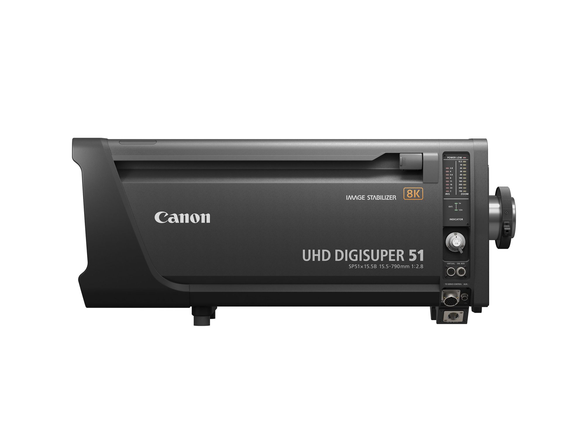 The UHD-DIGISUPER 51 8K field zoom lens provides high-quality optical performance for 8K broadcast cameras from the center to the periphery of the screen. The lens is built with the world's highest1 51x zoom, as well as the world's longest1 focal range from the wide-angle end of 15.5mm to the telephoto end of 790mm. In addition, the lens also features a built-in 1.5x extender that increases the maximum focal length to 1185mm. With the ability to realize high magnification, this lens provides users with the same operability as a conventional 2/3-inch HDTV or 4K field zoom lens, allowing them to switch to 8K video shooting and production without changing the shooting style.