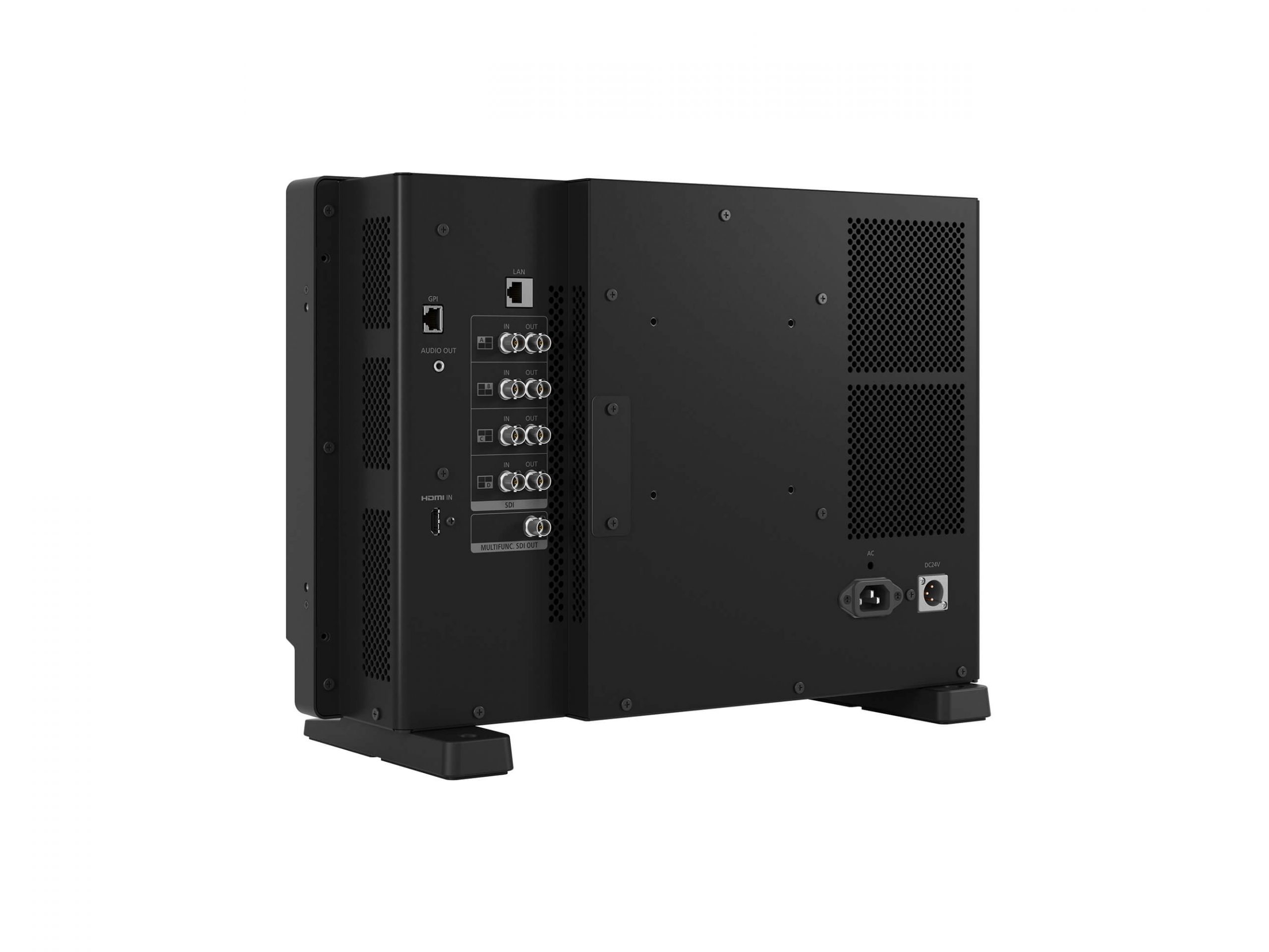 The DP-V1830 has a shallow form factor and weighs approximately 16.5 lbs. The display can be installed on 19-inch racks compatible with EIA standards3. This allows professionals the ability to use the display in existing broadcast and video production workplaces, as well as easy transportation to on-location worksites and production tents.