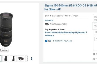 B&H photo has the Sigma 150-500mm f/5-6.3 DG OS HSM lens for…