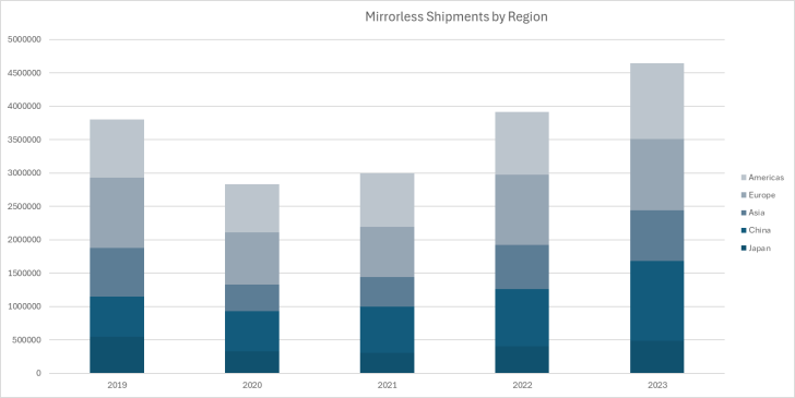 I think a lot of that depends on China for ILC's overall it's the only region with > 20% growth, looking solely at mirrorless, it had almost 40% growth compared to the Americas with 20%. Asia overall contributed the most with 2.44m in shipments, versus 1.92m the year prior.