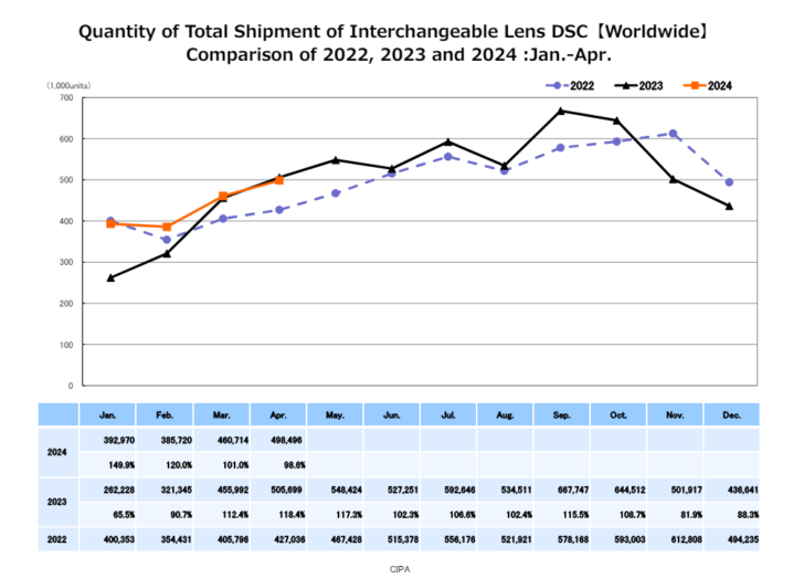 CIPA's overall ILC chart is shown below and you can see that 2024 is certainly holding its own, which is especially remarkable given the delayed releases from Canon and Sony.