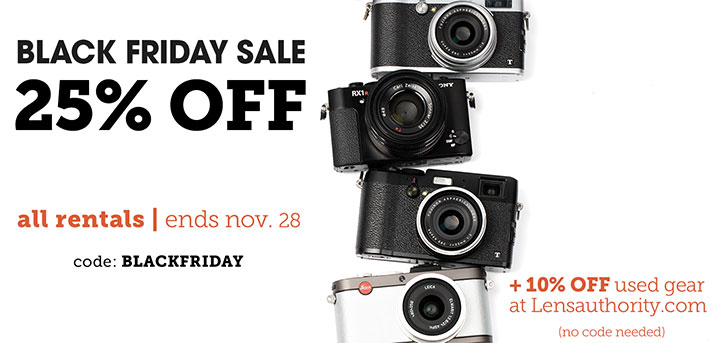 Lensrentals.com is offering 25% off for Black Friday week if you use the coupon code BLACKFRIDAY. You can also save 10% on all used gear purchases at Lensauthority.com, no promotional code is needed. This promotion runs until November 28, 2016.