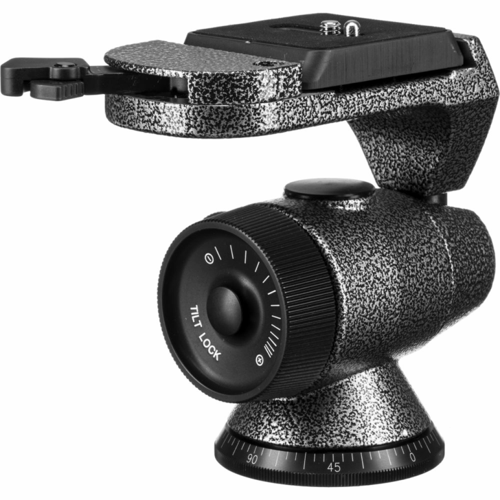 Exceptionally smooth rotation, positive locking, and rapid camera mounting are all features common to the Gitzo designed range of ballheads. The graduated base, with independent locking facilities permits perfect panoramic photography. The design of the panoramic base permits the ballhead to be used for table top or near ground level work with or without the use of a tripod. This is an offset ballhead, which makes it possible to point more than 90° down. Includes the standard size Gitzo quick release plate.