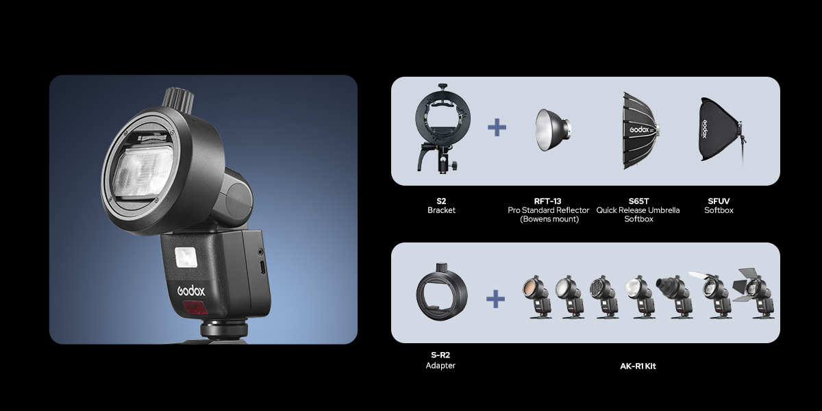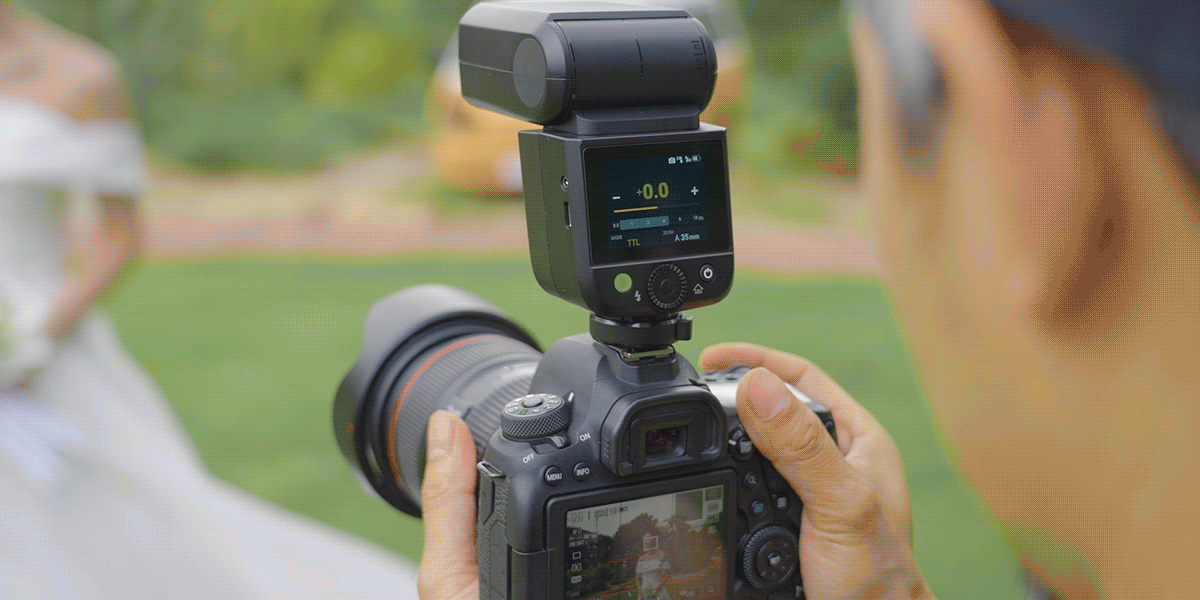 A 2W LED modeling light with adjustable brightness is integrated into the flash body with 5300K (+/-300K) CCT.