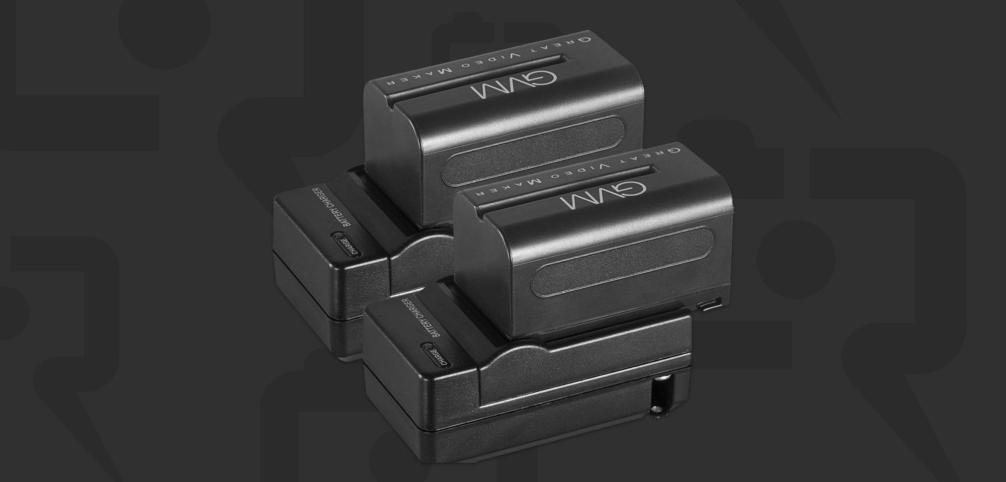 The set of two NP-F750 4400mAh Batteries with Travel Chargers from GVM pairs two Sony L-series type batteries with two single-battery chargers.