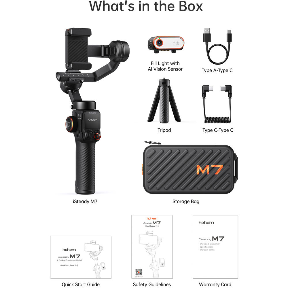 The improved Hohem iSteady M7 AI Tracking Smartphone Gimbal Stabilizer adds professional quality stabilization to your smartphone videos with an expanded AI tracking module and detachable remote control. High-torque motors and automated movement programs enable steady and captivating shots.