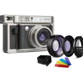 Featuring a premium 90 mm lens, capture every angle of your lavish lifestyle on Fujifilm Instax Wide film. Twice the size of an Instax mini snap, twice the fun. Juxtapose your frames in multiple exposure mode or capture sparkling nighttime escapades with the remote control shutter release and long exposure mode. Add the Ultra-wide-angle lens attachment to soak up even more extravagance or zoom in on those glistening pearls with the Close-up lens. You can even create some fun, sliced-up instants with the Splitzer lens attachment. So whether you’re cruising in your limo, perched at the bar or spinning the roulette wheel, your shots will be crisp, clear and totally stylish. Use the included Colored Gel Flash Filters to put a unique and colorful spin on the whole affair and if you play your cards right, you’ll discover extraordinary, ultra-wide instant imagination.
