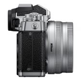 - NIKKOR Z DX 16-50mm f/3.5-6.3 VR: This is a stylized version of Nikon’s smallest lens, created with a satin silver finish to complement the Z fc. It’s an ultra-thin DX-format lens with a convenient wide-to-standard zoom range from 16mm to 50mm (24-75mm equivalent). It serves as a great walk-around lens for a wide variety of scenes ranging from landscapes, snaps, and portraits to tabletop photos.