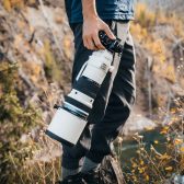 This lens strap is for exclusive use with a super-telephoto lens. It is made of mesh material to prevent discomfort, has excellent cushioning, and an anti-slip texture.