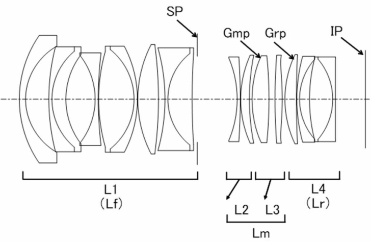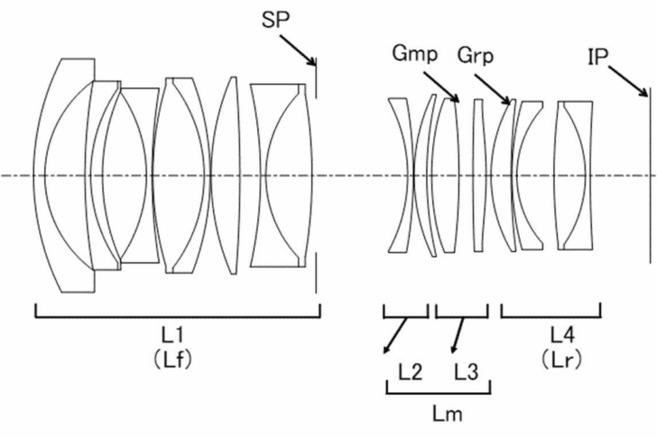 There were two embodiments, but I picked the larger one. Why? Because Canon has already created a smallish VCM f/1.4 lens, and I don't think they would feel the need to prioritize size on its premier 35mm lens. Here is the design of the Canon RF 35mm f/1.4L VCM lens with its 14 elements across 11 groups that include 2 UD elements and 2 aspherical elements.