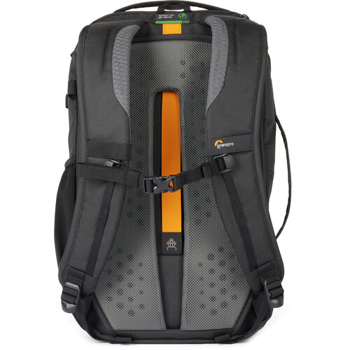 The pack meets Lowepro's environmental efforts by using up to 80% Green Line fabrics. Using recycled and solution-dyed fabrics saves water, reduces GHG emissions, and ultimately is better for the environment.