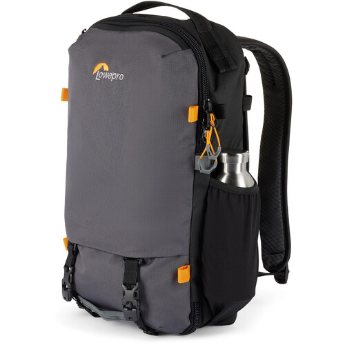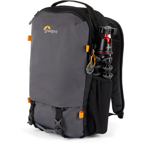 The gray, 18.5L Trekker Lite BP 150 AW AW Backpack from Lowepro has a soft structure, separate compartments, and customizable inserts. The pack accommodates a Sony a6000 or similar-sized camera with an attached lens, two additional small lenses, or a charger and a battery. Alternatively, it will hold a DJI Mavic Air 2 or similar small drone. A dedicated sleeve stores a 13″ laptop, and there's extra room for a small tripod and personal items. You can easily configure this bag to meet your needs when traveling. It has a removable camera insert with strap kit and large grab handles on the top, side, and front. The rear of the pack has a hideaway strap system and a separate laptop sleeve. This backpack is essentially three products in one: an accessory strap kit, an everyday travel backpack, and a photo gear insert.