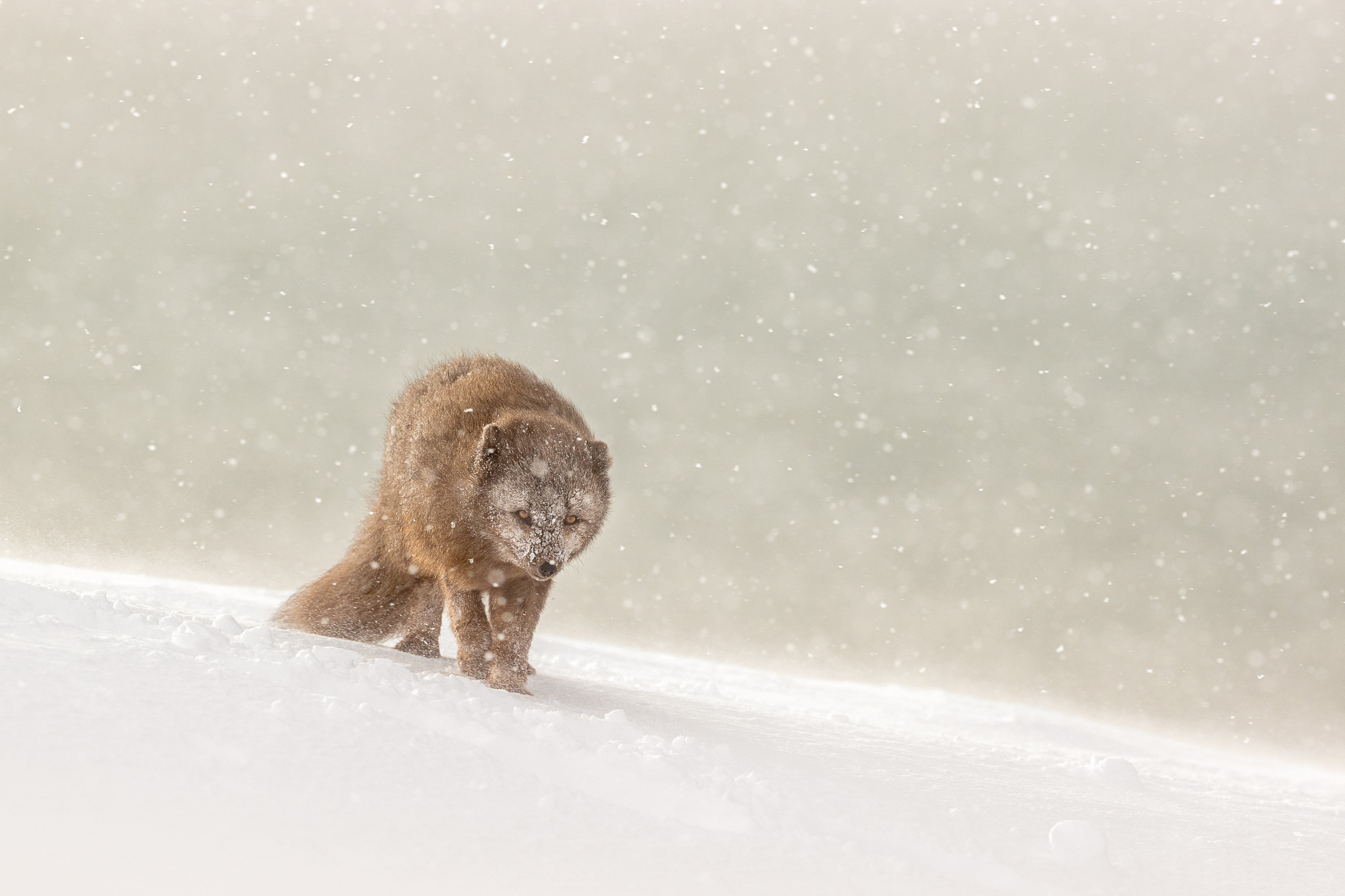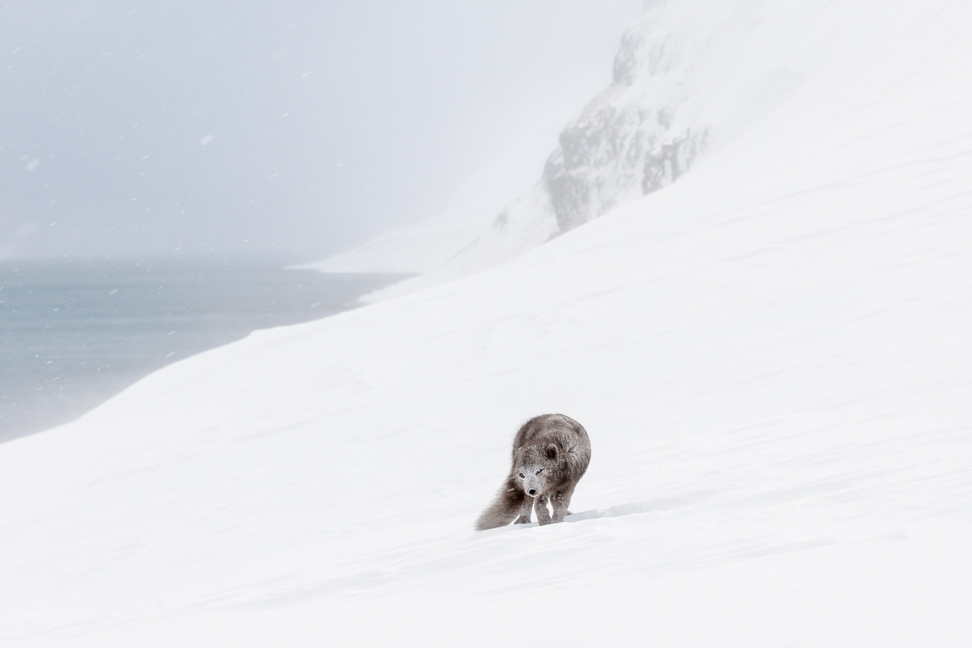 When photographing Arctic foxes, I frequently switch between single-point AF for precise focus (when the fox is stationary or moving slowly) and zone AF for tracking eye and movement (when it’s running or otherwise active).