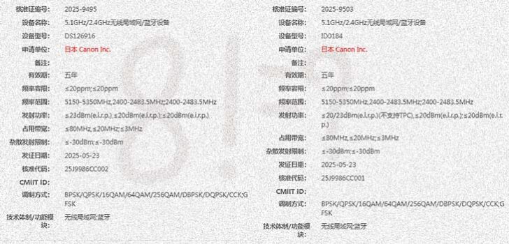 It has been reported that this certification shows Dual-Band Wi-Fi 5, which is the same as the PowerShot V1. Both the EOS R5 Mark II and EOS R1 use the dual-band Wi-Fi 6 specification, which seems like something you'd see in the next 6 or 7 series camera.