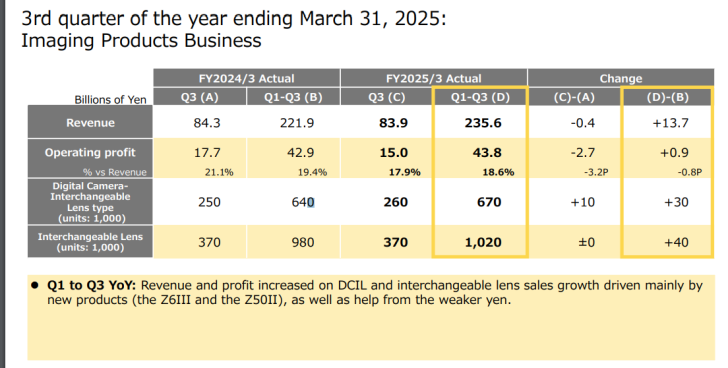 The imaging department sold 10,000 more units for the quarter compared to 2023. I should note that this period, from September through December, is usually when the camera companies enjoy the most sales. Nikon went at that quarter with all guns blazing.