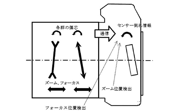 This patent application describes cases when zooming a lens, the image plane “tilts” and shifts. This patent is so that when you are zooming the lens, the sensor will automatically tilt in two axis, depending on instructions from the lens itself.