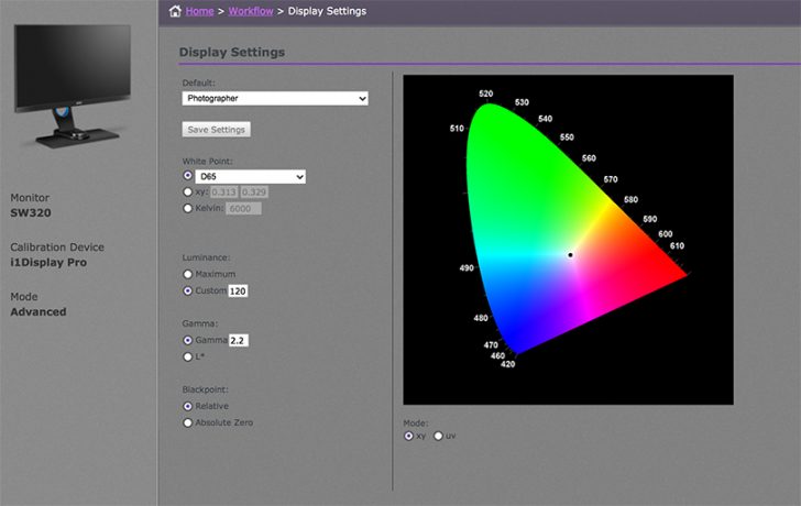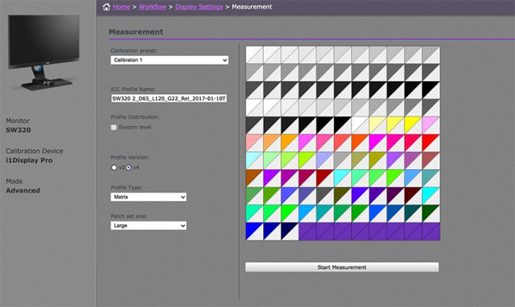 The SW320 ships with the BenQ Palette Master Software; but it can also be downloaded for free from the BenQ website. By using the Palette Master Element software and a calibrator (X-rite i1 Display in my case), you can tune and maintain the colour performance of the monitor at its most optimal state.