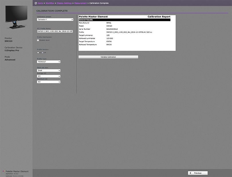 I feel it is extremely important that calibration software is intuitive and easy to use. In fact, the simpler the better in most cases as it means there is less chance of users making a mistake during the calibration process. To BenQ’s credit, the supplied Palette Master software is easy and intuitive as well as ensuring accurate calibration of the display. If you purchase an SW320 be sure to use the Palette Master Software to ensure you are accessing the Hardware LUT for the best possible results.