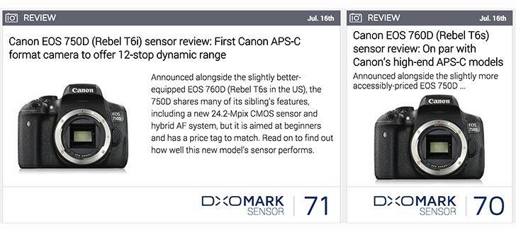 DXOMark has completed their reviews of the sensors in the EOS Rebel 750D and EOS Rebel 760D and found them to be nearly identical.