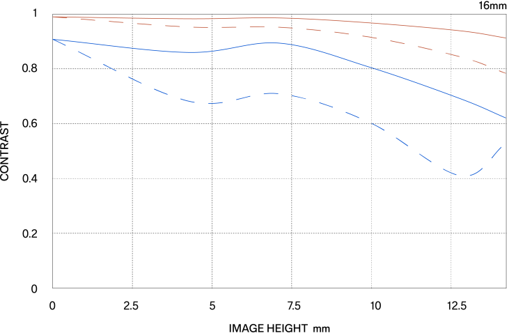 Looking at the MTF on the wide end, the resolution isn’t the greatest at 16mm, but given that it’s a 16-300mm, miracles cannot be expected. What I like about the MTF is that the falloff isn’t sharp, which should indicate that it doesn’t have messy corners.