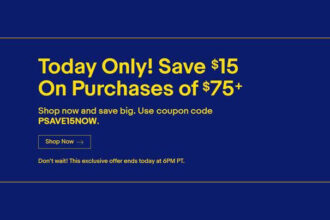 Ended: 6 Hour Flash Sale at ebay, Save $15 on Purchases of $75 or More