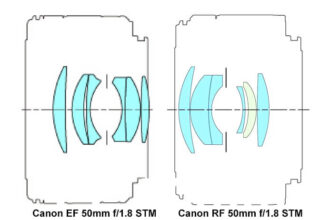 Lens design comparison: Canon EF 50mm f/1.8 STM and the Canon RF 50mm f/1.8 STM