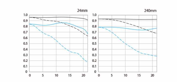 MTF means Modular Transfer Function, which probably sounds even more strange. Each lens manufacturer publishes the MTF graphs, and we can use these graphs to determine the quality of the resolution and contrast at the center and corners, and also make some educated guesses on the bokeh quality and astigmatism.