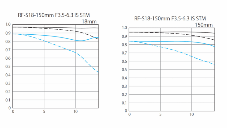 The MTF response seems to be very similar to the Tamron lens, so it’s still not an exceptional optic, but you are getting a much smaller lens as we illustrated when we compared the sizes of the lenses. You wouldn’t be purchasing this lens over the others for its optical performance, but you would buy this lens if you wanted a small, compact, and lightweight superzoom for your RF-S camera.