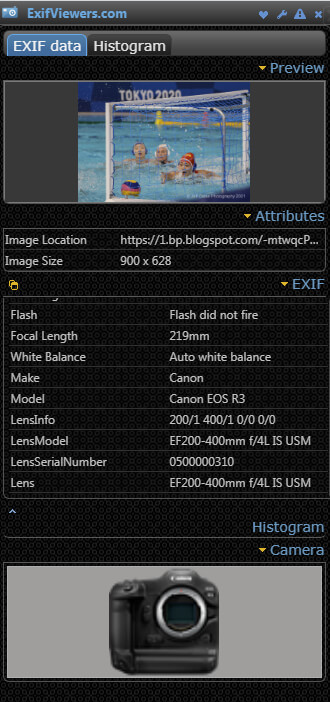 It looks like the resolution of the sensor in the Canon EOS R3 has been confirmed at 24mp. It looks like EXIF data that made it out of Tokyo Olympics images have made their way to the Canon Rumors Forum.