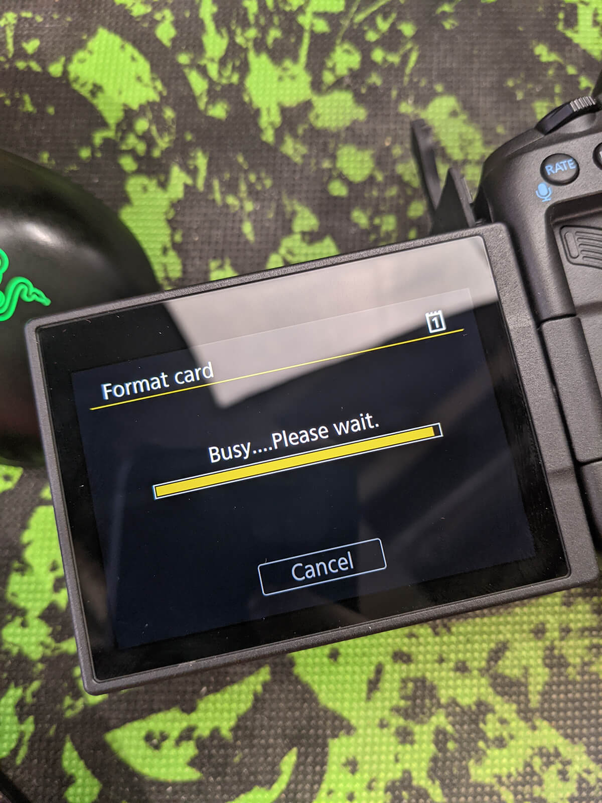 Shooters with a Canon EOS R5 and firmware v1.4.0 are getting camera lockups when attempting to format the memory card in the Canon EOS R5.