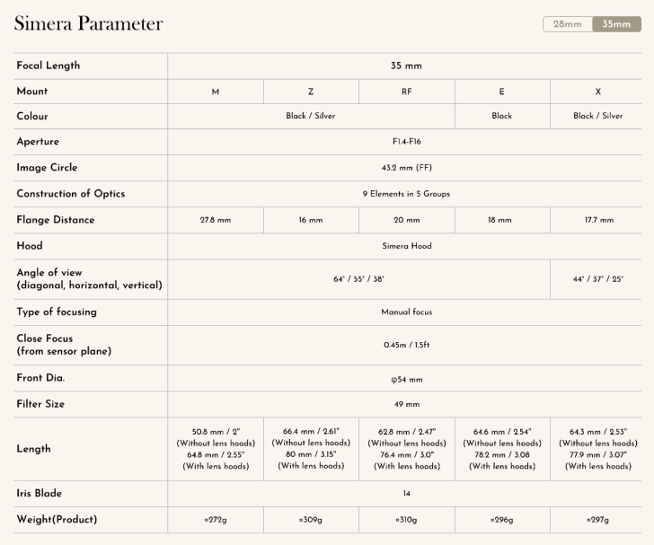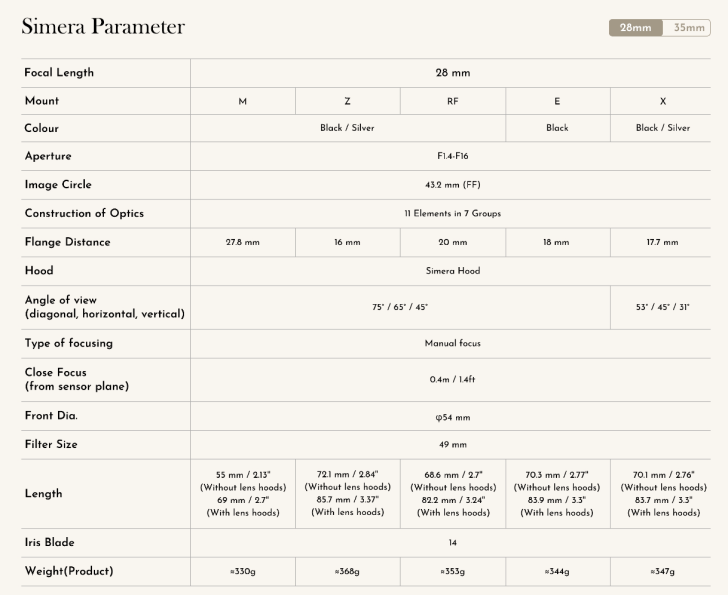 Thypoch Expands Simera 35mm & 28mm f/1.4 Lineup to Z/ X/ E/ RF Mounts
