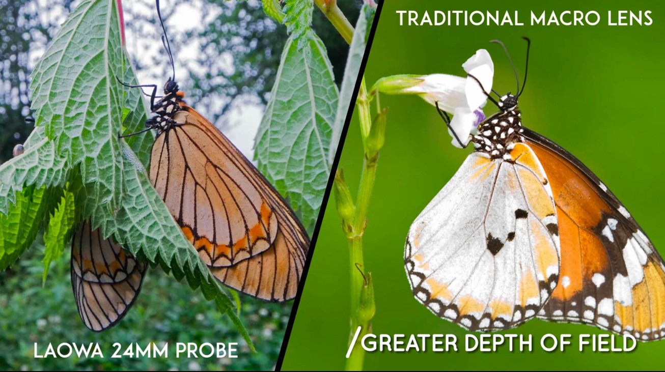 The new Laowa Probe covers a focusing range from 2:1 macro magnification to Infinity Focus. Photographers can take advantage of the 2:1 maximum magnification to shoot really small bugs/objects and reveal details that cannot be seen by naked eye. The wide focusing range (from Macro to infinity) is also particularly useful for videography as both finer details and environmental background can be captured in one shot.